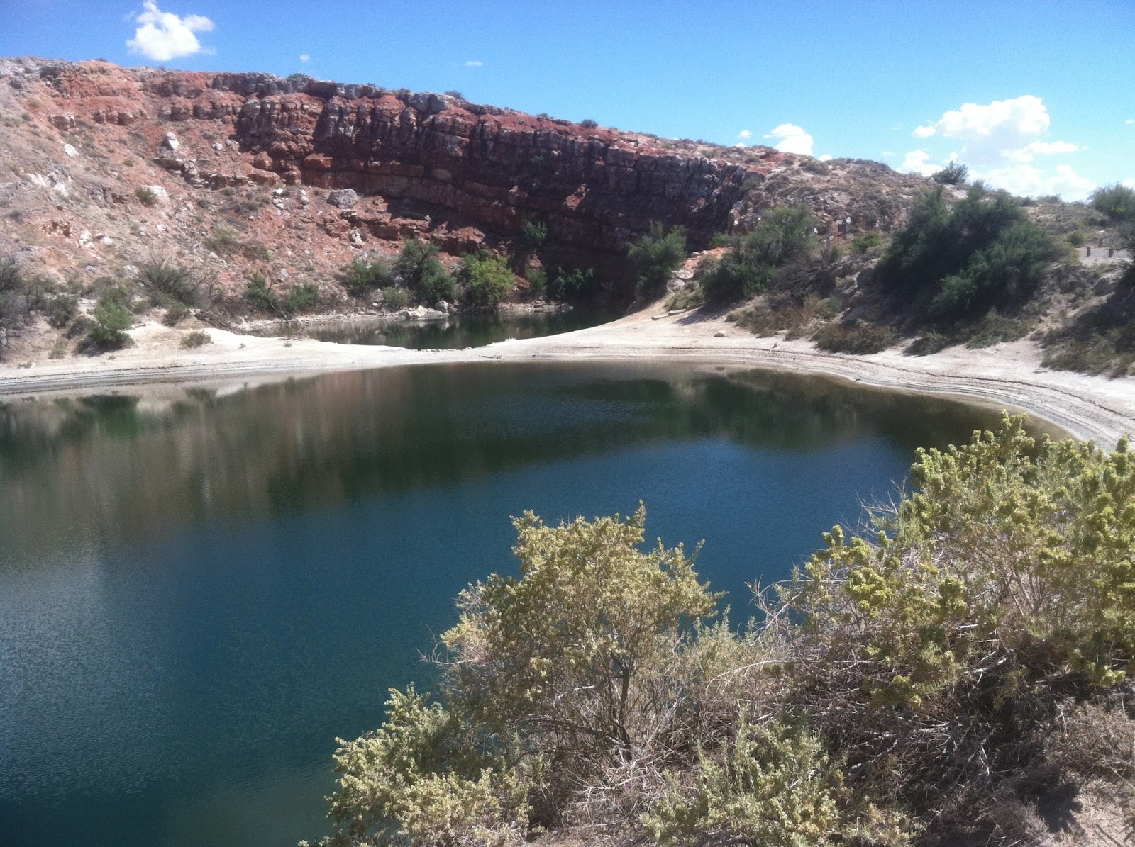 A scene from Bottomless Lakes west of Roswell on a summer day a couple of years back. Salt domes caved in below and then filled with groundwater. There are several lakes averaging about 100 ft. deep, but that would seem bottomless to all but a decent scuba diver. The largest lake, further south is said to have a Model T resting on the bottom. Supposedly, driven over the edge long ago.