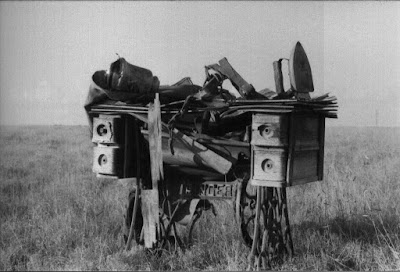 I took this picture because we humans often see beauty in entropy….wasabi! Glued mortise and tendon or dovetail joints split gradually apart by cold, heat and humidity, desert sun. Paint fading, cracking, chipping. Wood grain relaxing its grip, softening, melting ground ward. I also chose black and white film (yes this was taken back when people still used actual film). Black and white seems to more quickly establish a mood that might require additional technique in color.